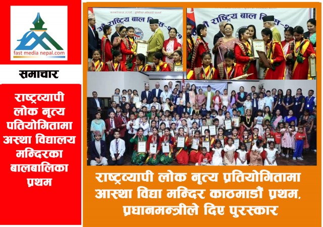 राष्ट्रव्यापी लोक नृत्य प्रतियोगितामा आस्था विद्या मन्दिर काठमाडौं प्रथम, प्रधानमन्त्रीले दिए पुरस्कार