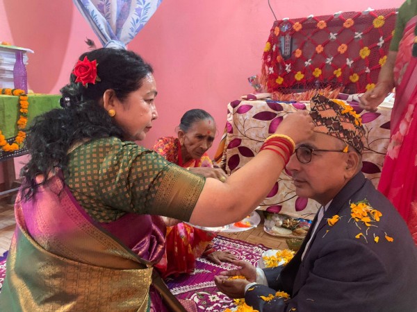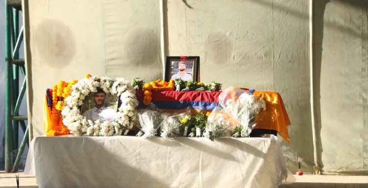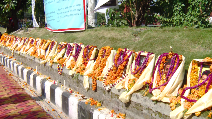 शहीदको फोटोमा सप्तरंगी टीका, मखमली र सयपत्री फूलको माला