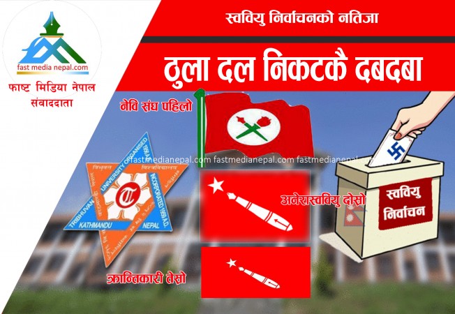 राजनीतिमा दबदबा उहि र उस्तै : स्ववियु निर्वाचनको नतिजा– नेवि संघ पहिलो, अनेरास्ववियु दोस्रो अनि....