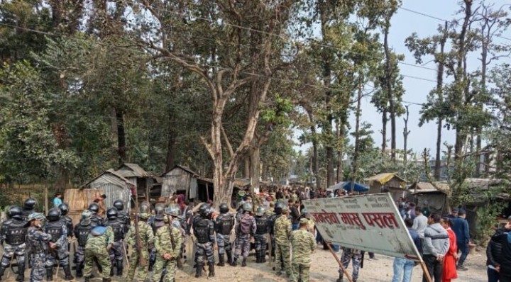 मेचीनगर नगरपालिका–१३ चारआलीस्थित बनक्षेत्रमा अनाधिकृत रुपमा बनाइएका टहरा सुरक्षाकर्मीको सहयोगमा भत्काइयो