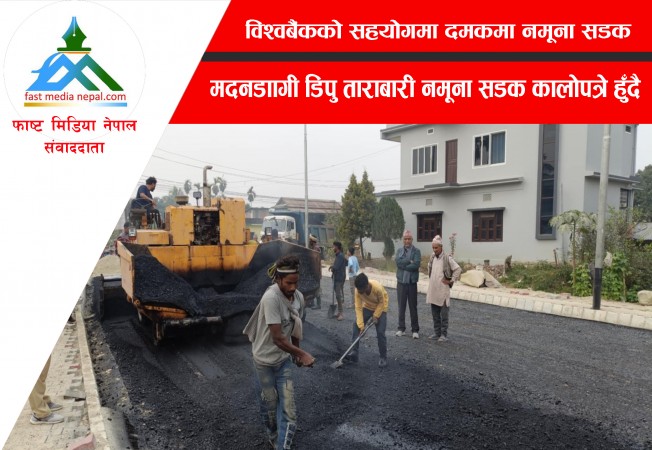 विश्वबैंकको सहयोगमा दमक मदनडाँगी डिपु ताराबारी नमूना सडक कालोपत्रे हुँदै