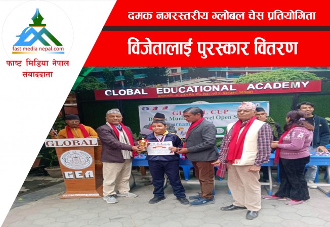 दमकमा नगरस्तरीय ग्लोबल चेस प्रतियोगिताका विजेतालाई पुरस्कार