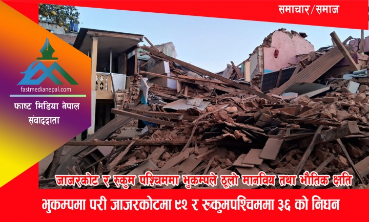 भूकम्पमा परी जाजरकोटमा ९२ र रुकुम पश्चिममा ३६ जनाको मृत्यु