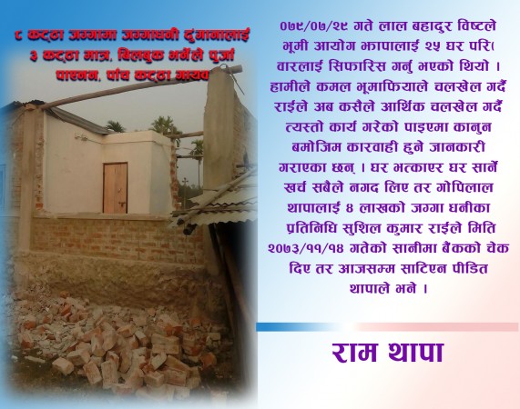८ कट्ठा जग्गामा जग्गाधनी ढुंगानालाई ३ कट्ठा मात्र, बिलबुक भर्नेले पुर्जा पाएनन, पाँच कट्ठा खोई....