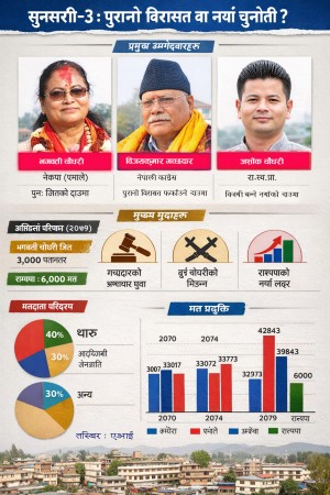 सुनसरी–३ मा पुरानो विरासत र नयाँ चुनौती : गच्छदार, भगवती र अशोकबीच त्रिकोणीय प्रतिस्पर्धा तीव्र