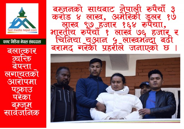 हत्कडीसहित सार्वजनिक गरिएका बम्जनको साथबाट विभिन्न देशका करोडौं रकम बरामद्