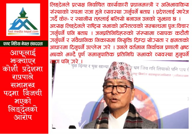 झुक्याएर कोशी प्रदेशमा सभामुख बनेको अध्यक्ष लिङ्देनको आरोप