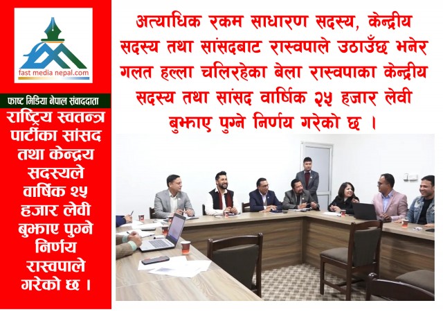 रास्वपाका केन्द्रीय सदस्य तथा सांसद वार्षिक २५ हजार लेवी पार्टीलाई बुझाउनुपर्ने
