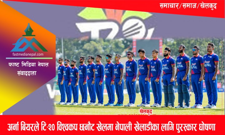 टि–२० विश्वकप छनोटमा नेपाली खेलाडीको खेल कौशलको आधारमा अर्ना बियर कम्पनीले पुरस्कार दिने घोषणा