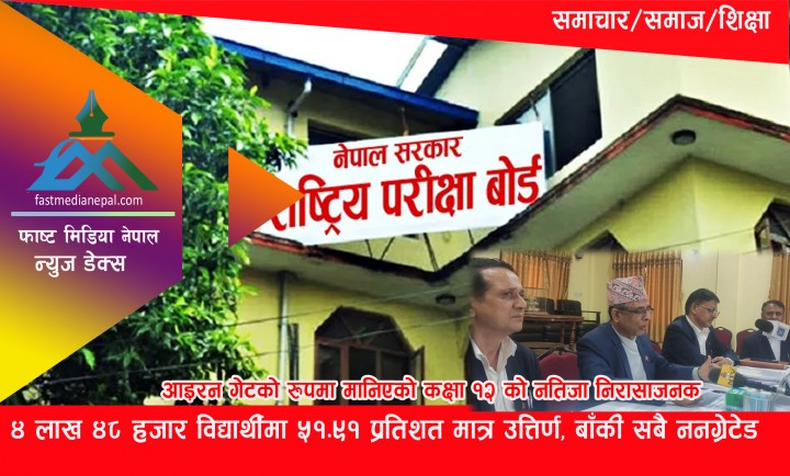 कक्षा १२ को निराशाजनक नतिजा प्रकाशित, झण्डै आधा विद्यार्थी ननग्रेडेड, पुनः परिक्षा २ विषयको लागि....